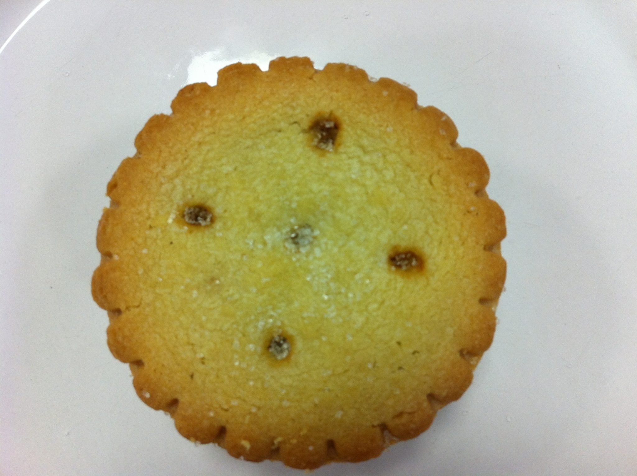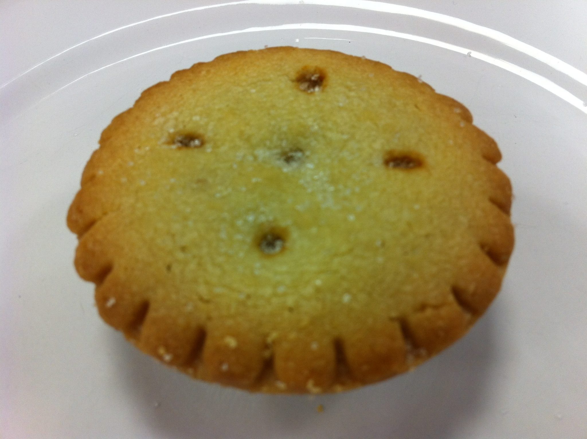 “Pleasingly symmetrical design to this pie, was it made for mathematicians? Very spicy filling, a lot of ground cloves or all spice and some booze too. Sadly I think the spice was actually overdone and it mean that plenty of tea was needed to wash the pie down. Wouldn’t recommend. Duchys Originals?”