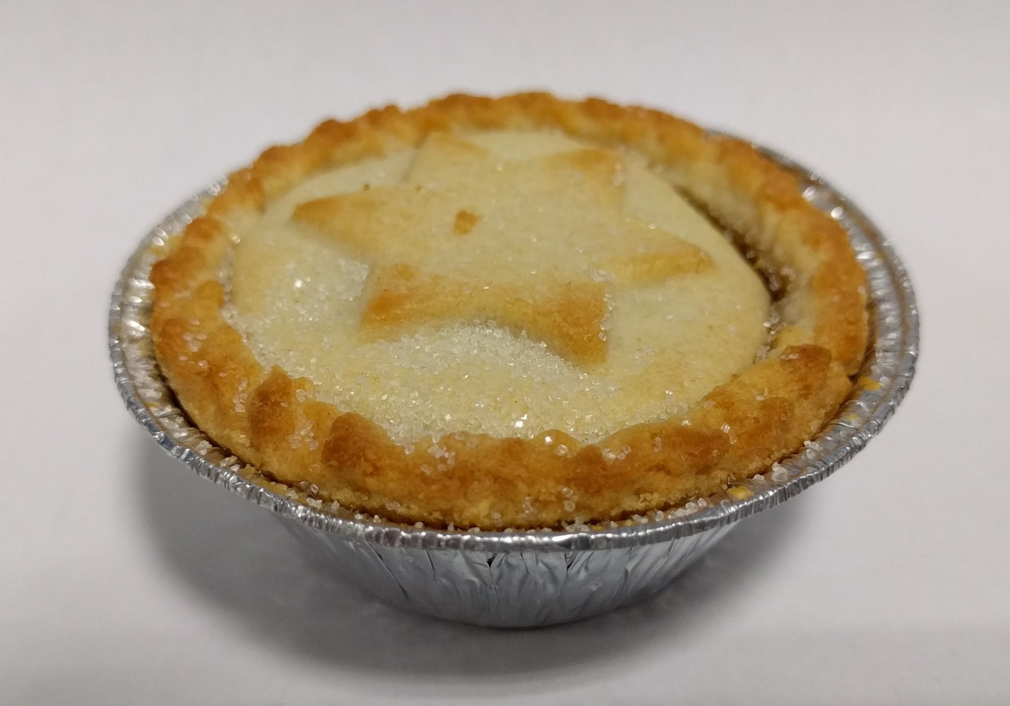 Today's pie is a little on the small side but has a nice star shape on the top and a light sprinkle of granulated sugar. All the pies in the box look slightly different with filling oozing out from wonky tops.