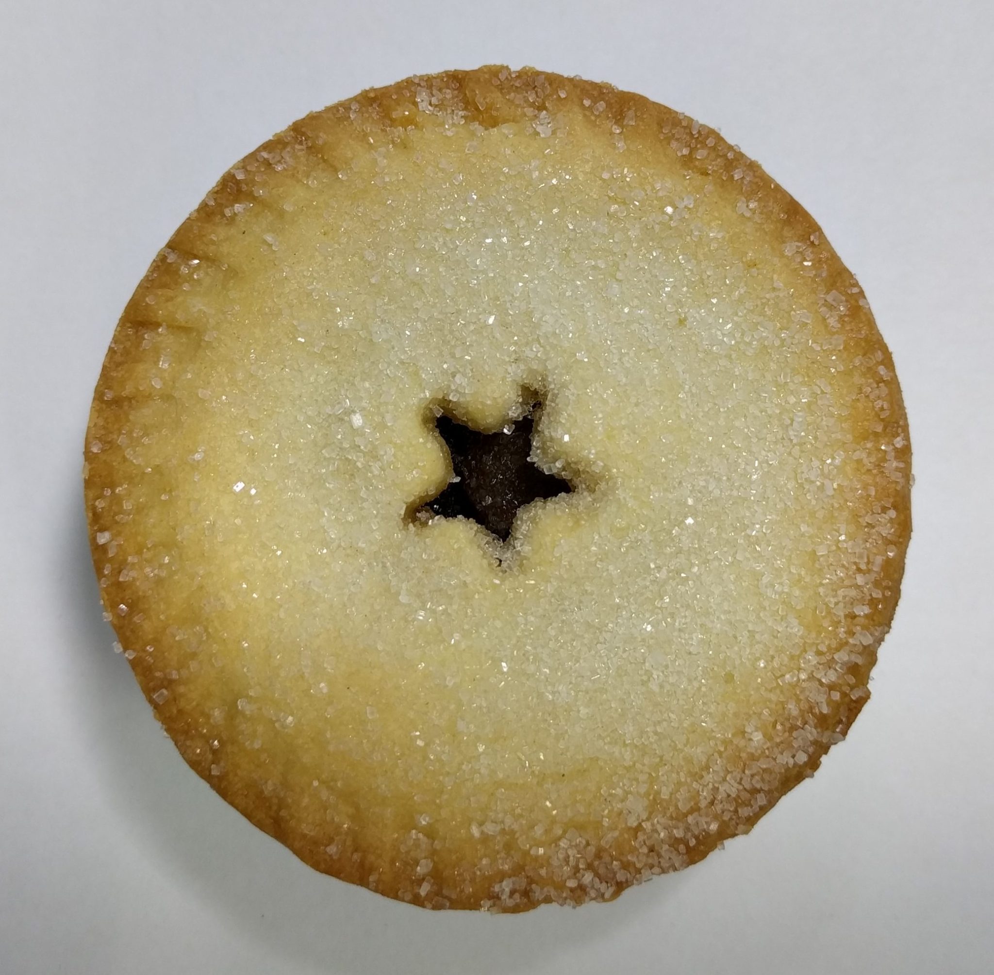 Now here is a pretty looking pie. Quite a unique design with the start shaped steam hole incorporating a festive design with a practical feature. Could this pie be full to the brim with tasty filling... lets find out.A reasonable size file, with exceptionally generous sugar topping glinting under the lights. There was a good aroma as I opened the box, but sadly that seemed to disperse when I came to try the pie. It's a good weight in the hand, another sign on plenty of filling.First impressions were very good. That generous sugar topping gave the lid a bit of a crunch, but the pastry was still soft and it didn't crumble. Plenty of tasty filling to be sampled, with a fruity texture.What's not to like about this pie. It delivers in all the right areas. Only that crunchy sugar coated lid that causes a little concern.