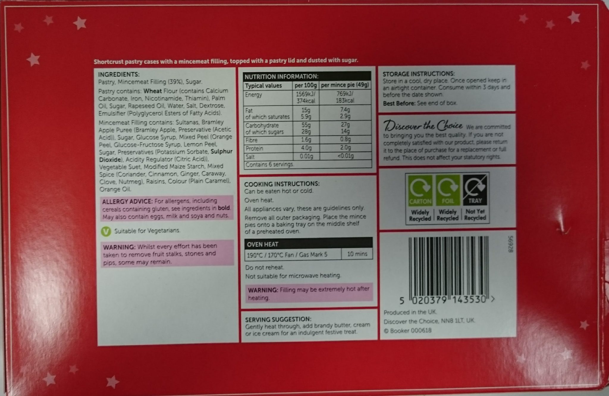 Today we have this generic ‘Discover The Choice’ Mince Pie. This brand is by Londis. It’s a nice looking pie with a star design on top. A little on the small side. But it does have a nice coating of granulated sugar.