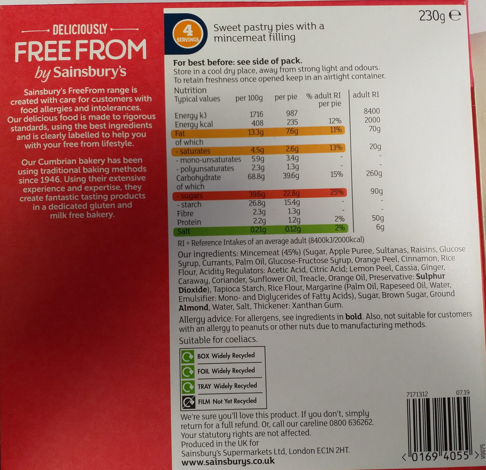 So today we have a Sainsbury's "Free From" mince pie. Lets hope it's not "Free From" taste.