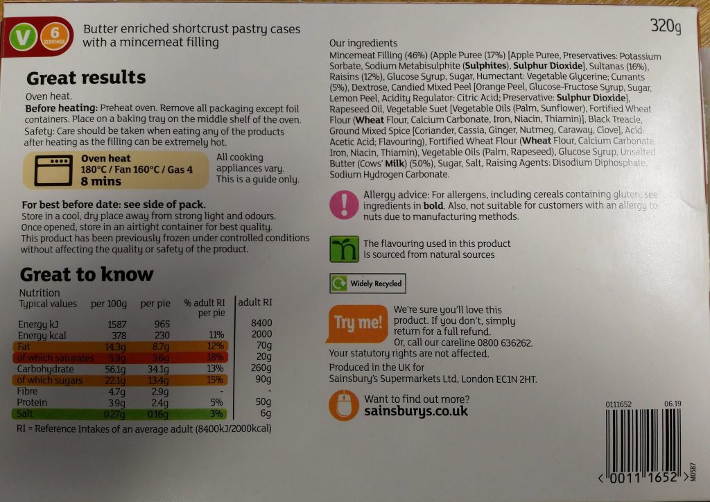 Butter enriched shortcrust pastry cases with a mincemeat filling.