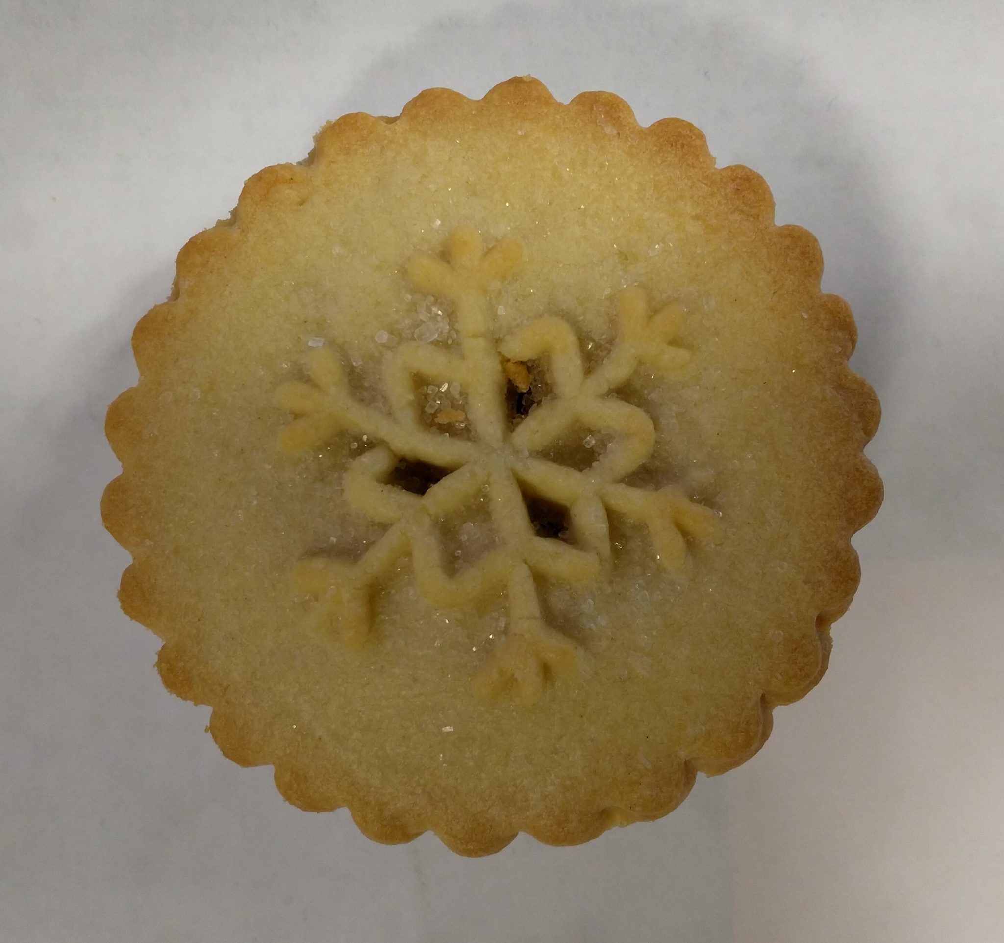 Today we have the Tesco Finest All Butter Pastry Mince Pie. As you can see it's a very good looking pie with a nice snowflake design, sprinkle of granulated sugar and three steam holes.