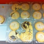 “The smell reminded me too much of vinegar, which i am not a fan off, so unfortunately this pie did not get off to a good start. The very dry, and too crumbly pastry did not add to the already not-so-good first impression. Quite liked the use of powdered sugar, instead of traditional granulated. Really liked the filling – just the right amount of sugar, smooth but also chunky, with a mice mix of fruit flavours, but owing to the shape of the pie, not enough of it! The sugar coating suggest some kind of wannabe-premium brand… Tesco Finest?”